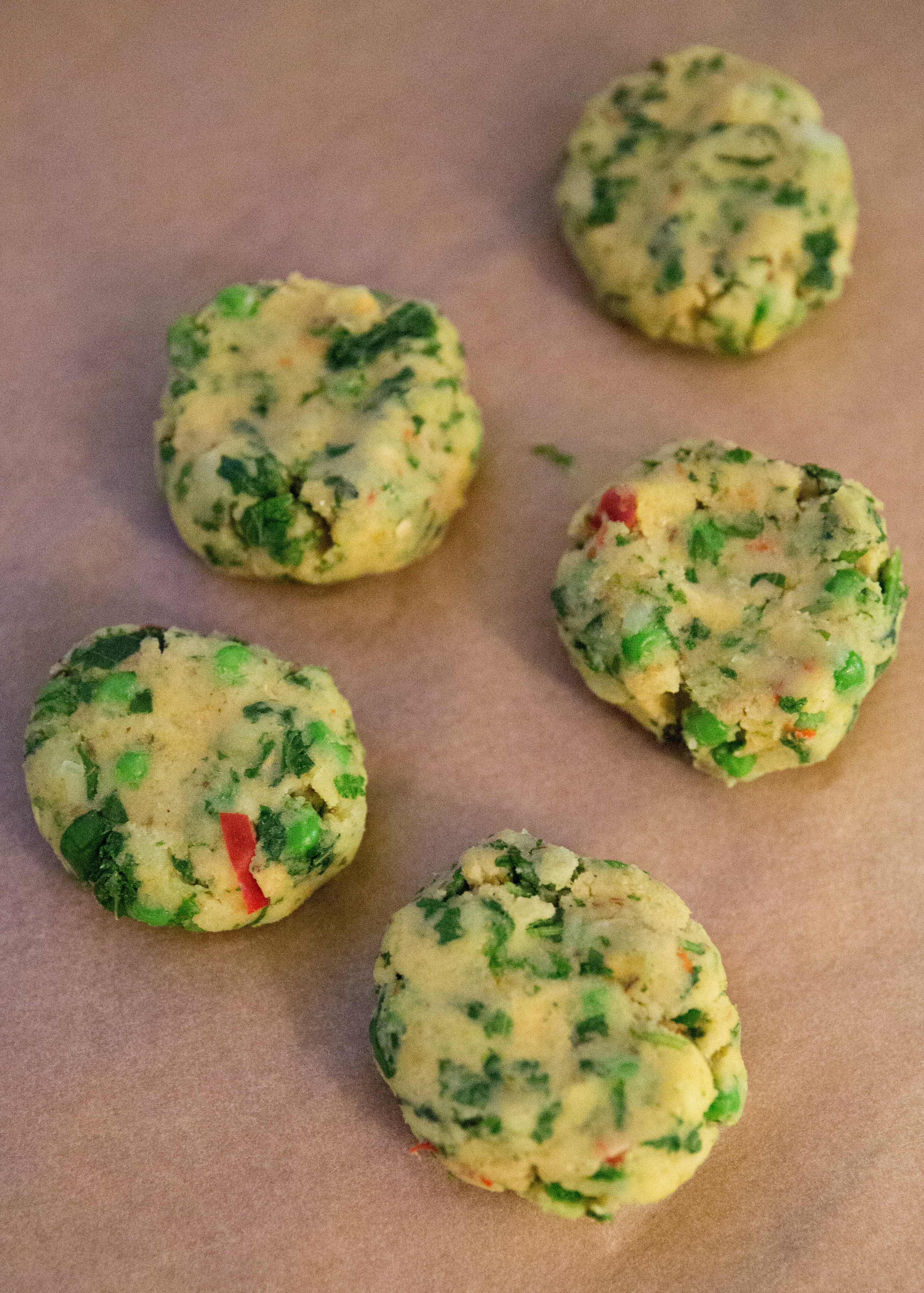 Pyörittele taikina palloiksi, litistä ne pihveiksi ja paista pannulla öljyssä kullanruskeiksi ja rapeiksi: keskilämmöllä 2–3 minuuttia per puoli.