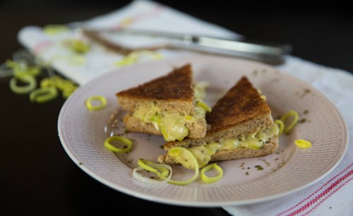 Leikkaa täytetyt, paistetut leivät kauniiksi kolmioiksi ja aseta ne lautaselle – herkullinen täyte saa valua viipaleiden välistä. Syö heti, sillä rapea pinta katoaa nopeasti leivän jäähtyessä.