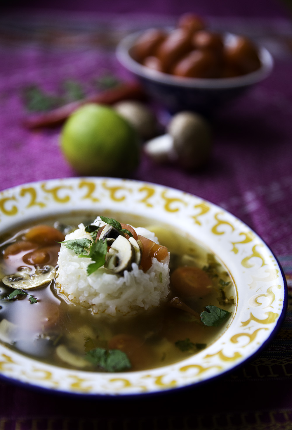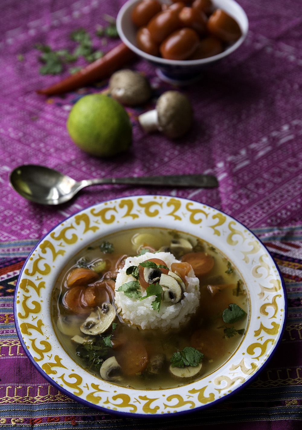 Riisi, leipä ja salaatti ovat loistava lounas. Lempeä ruoka tosin asettuu sulavasti myös itämaiseen, usean ruokalajin juhlapöytään tai lisäkeriisiksi vaikkapa paistetun kalan seuraan.