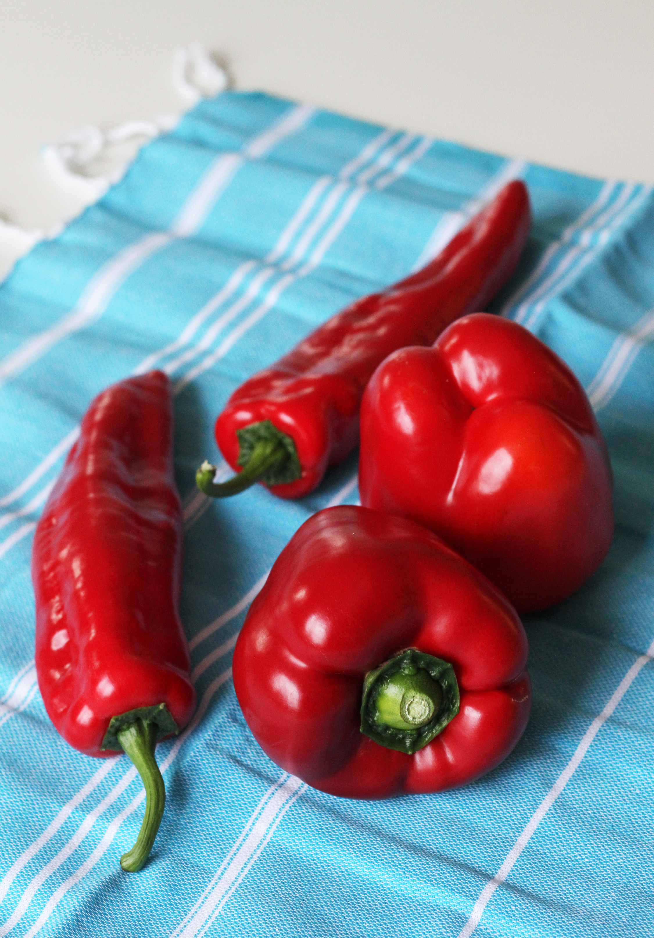 Käytin tällä kertaa kaksi tavallista paprikaa ja yhden makean suippopaprikan.