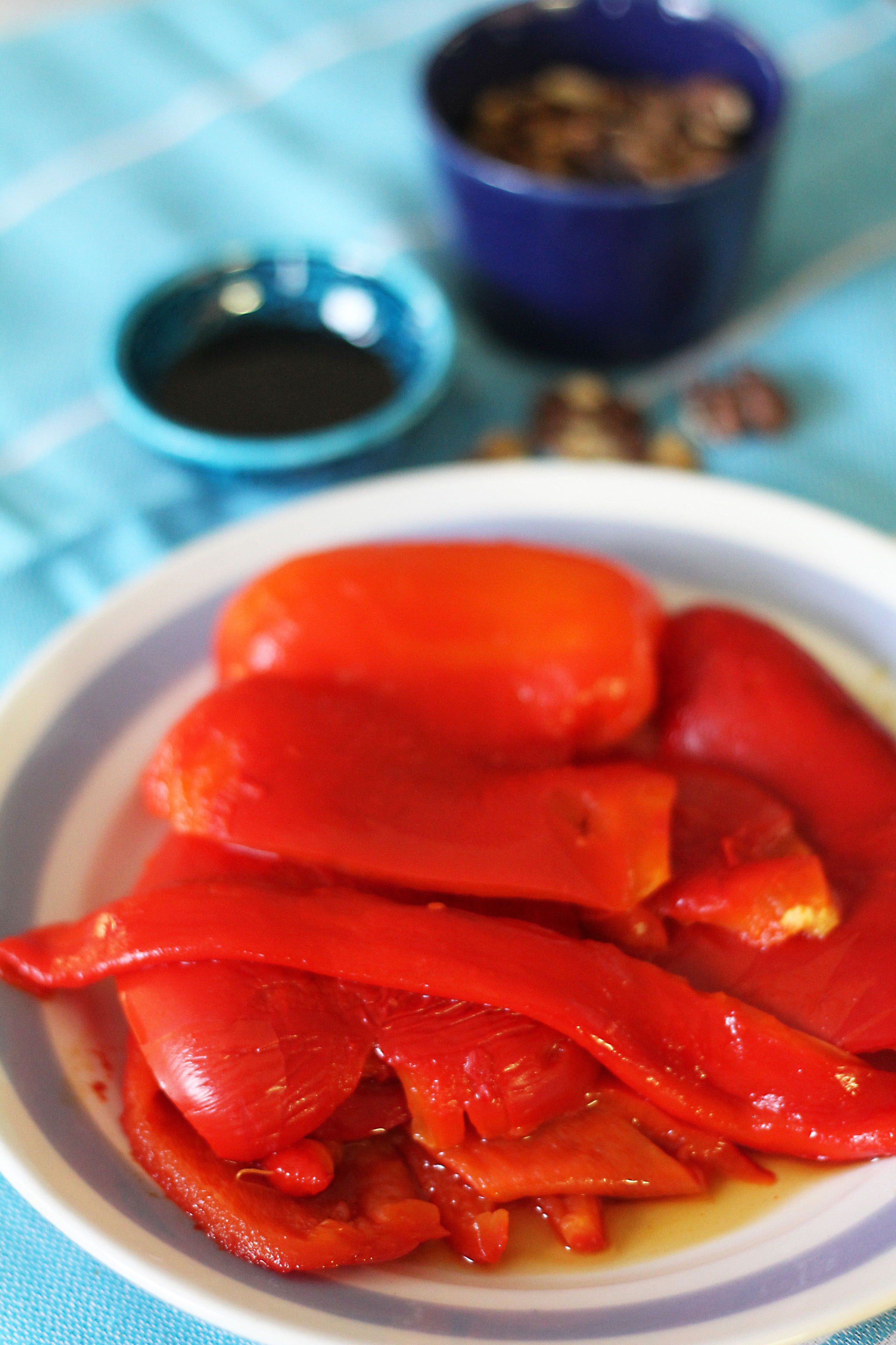 Ja sitten sekaisin: jäähtyneet paprikat, granaattiomenasiirappi, pähkinät ja mausteet.