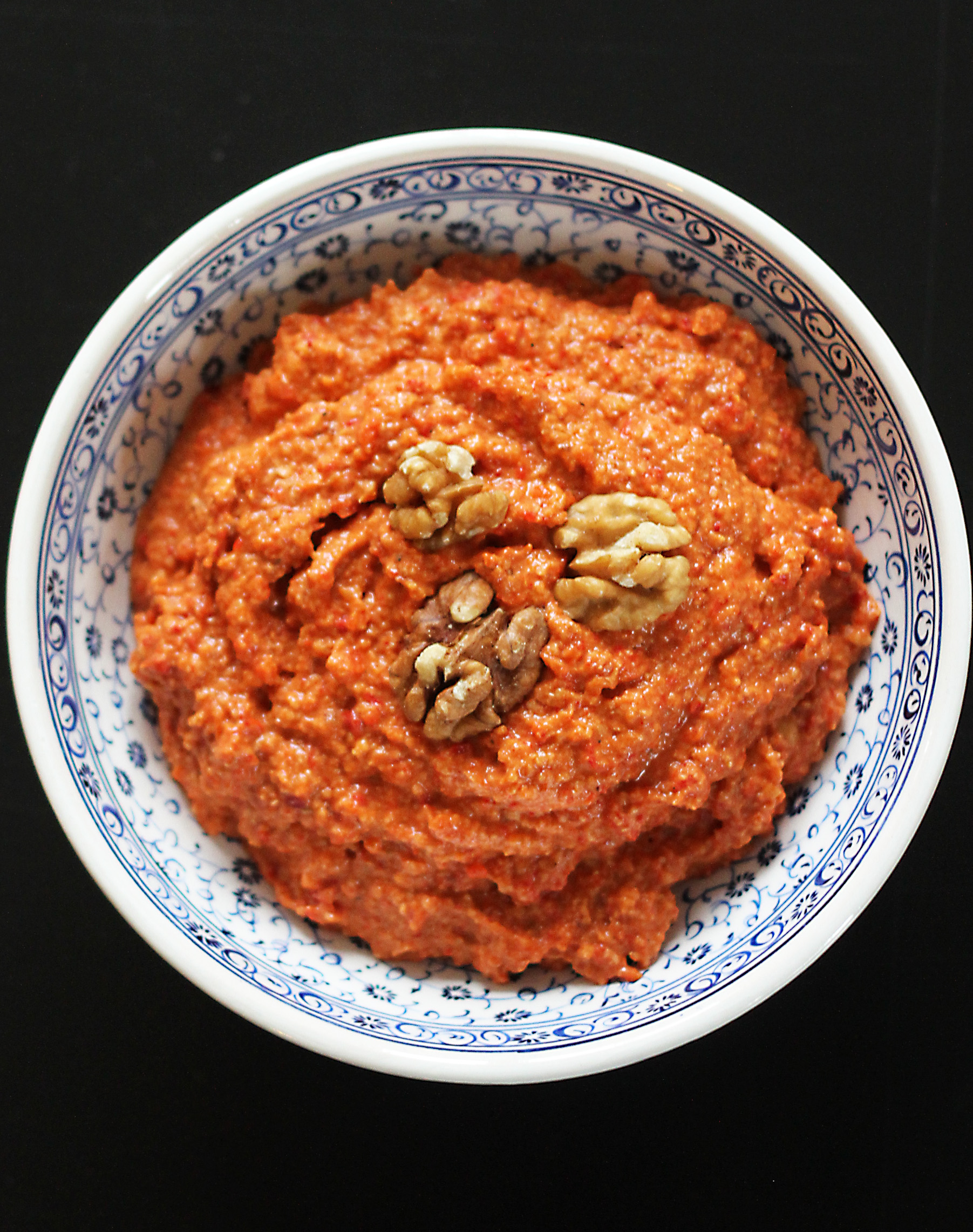 Söimme äskeisellä lomalla Istanbulissa monenlaisia versioita muhammarasta. Jossain tahnaa oli selvästi maustettu savupaprikalla, jossain saksanpähkinät on jätetty karkeaksi rouheeksi muuten sileän tahnan sekaan. Kaikki versiot olivat valitettavan herkullisia!