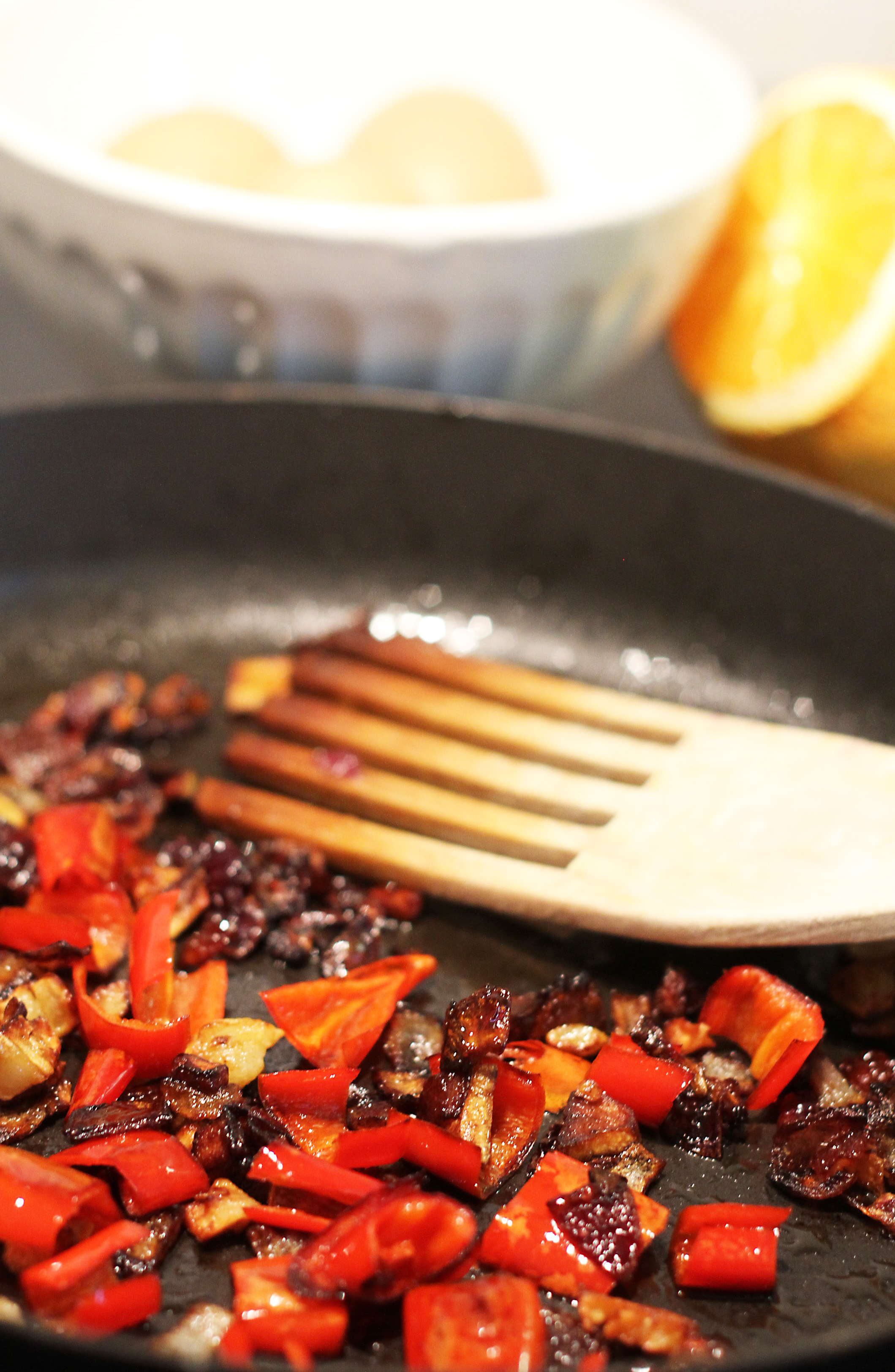 Lämmitä paistinpannulla hiukan oliiviöljyä ja kumoa maustetut kikherneet pannulle. Paista höyryävän kuumiksi – sellaiset 3–4 minuuttia, sekoittele kevyesti. Mausta suolalla ja mustapippurilla.