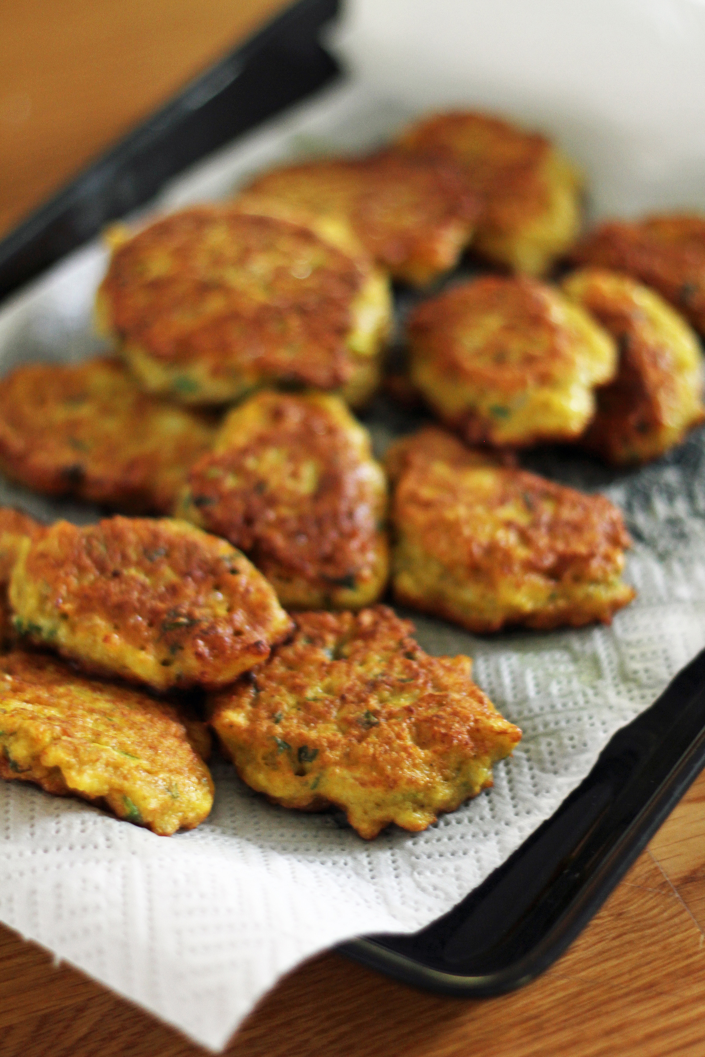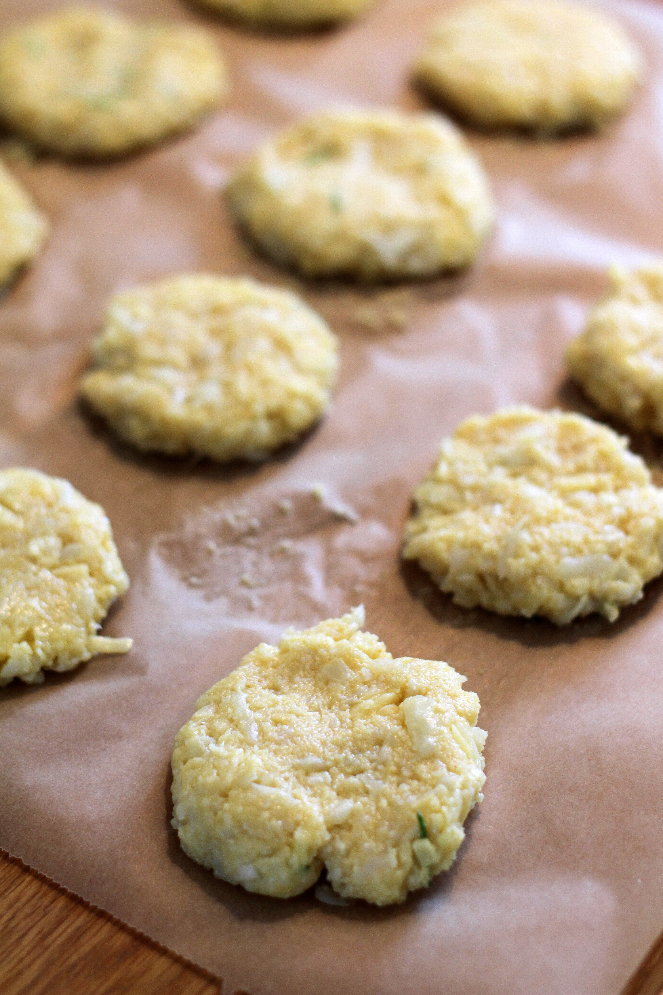 Muotoile taikinasta öljytyillä käsillä kakkusia leikkuulaudalle tai leivinpaperille. Paista ne kypsiksi pannulla keskilämmöllä oliiviöljyssä, 3–4 minuuttia per puoli. Syö heti.