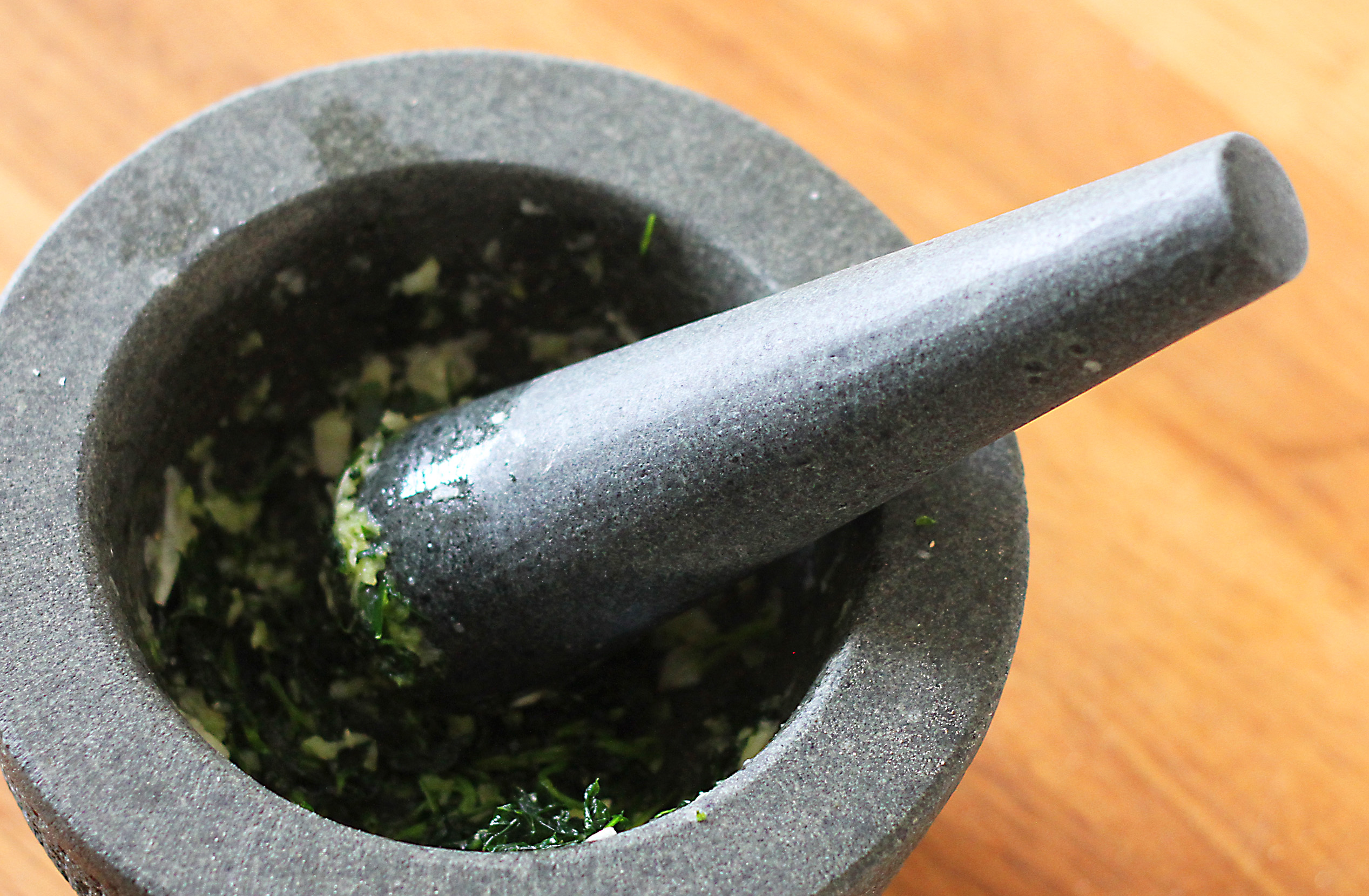 Sekoita huhmareessa tai monitoimikoneessa valkosipuli, persilja, parmesaani ja oliiviöljy notkeaksi tahnaksi. Voit maustaa tahnan hitusella suolaa, mutta se ei ole välttämätöntä. Levitä jokaiselle kalalle vajaa teelusikallinen täytettä ja taita ne takaisin kalan muotoon. Maalaisjärkeä saa käyttää: isojen kalojen sisään mahtuu enemmän täytettä kuin pieniin – kyllä te tiedätte.