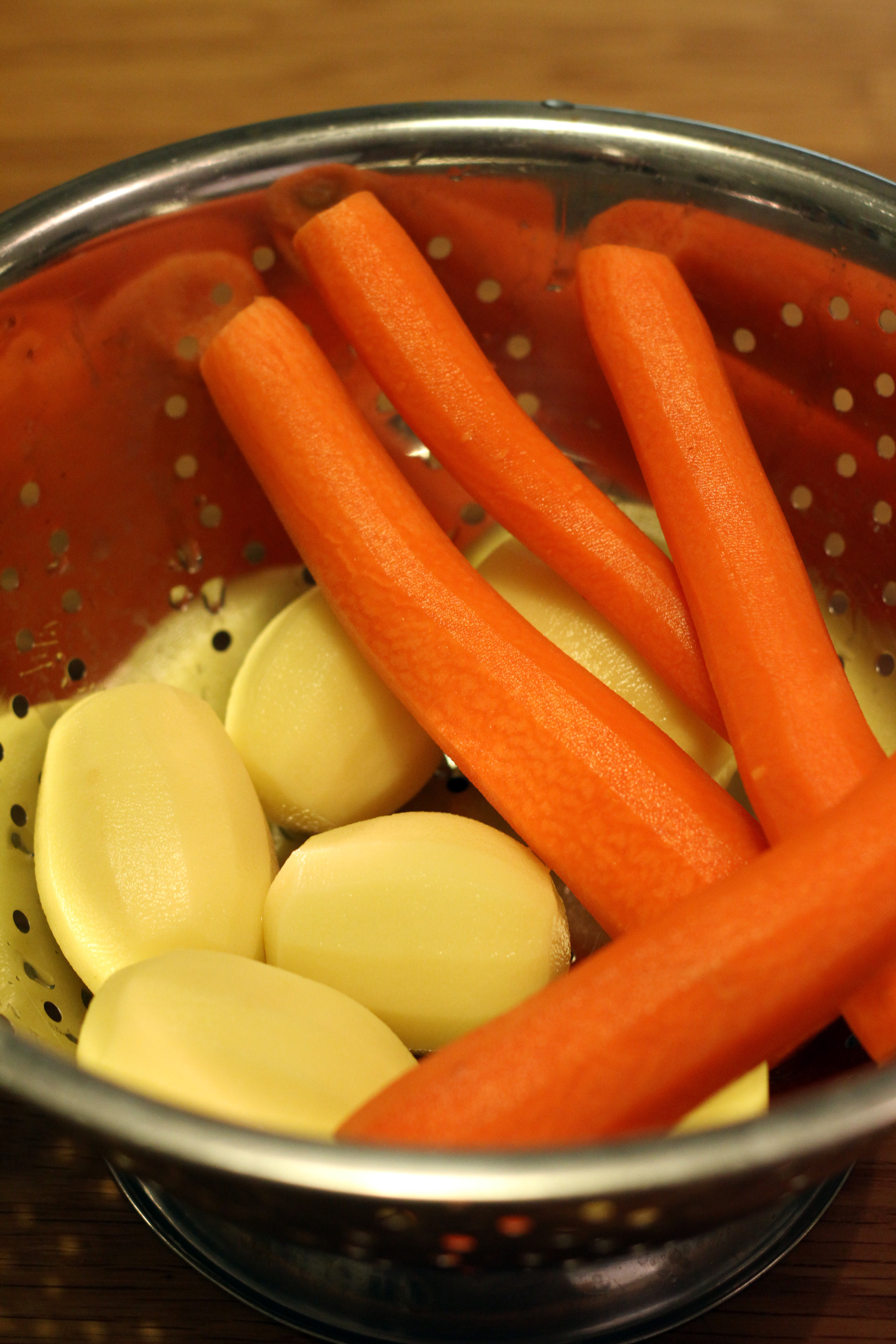 Lisää paloitellut porkkanat ja pyörittele niitäkin kattilassa hetki.